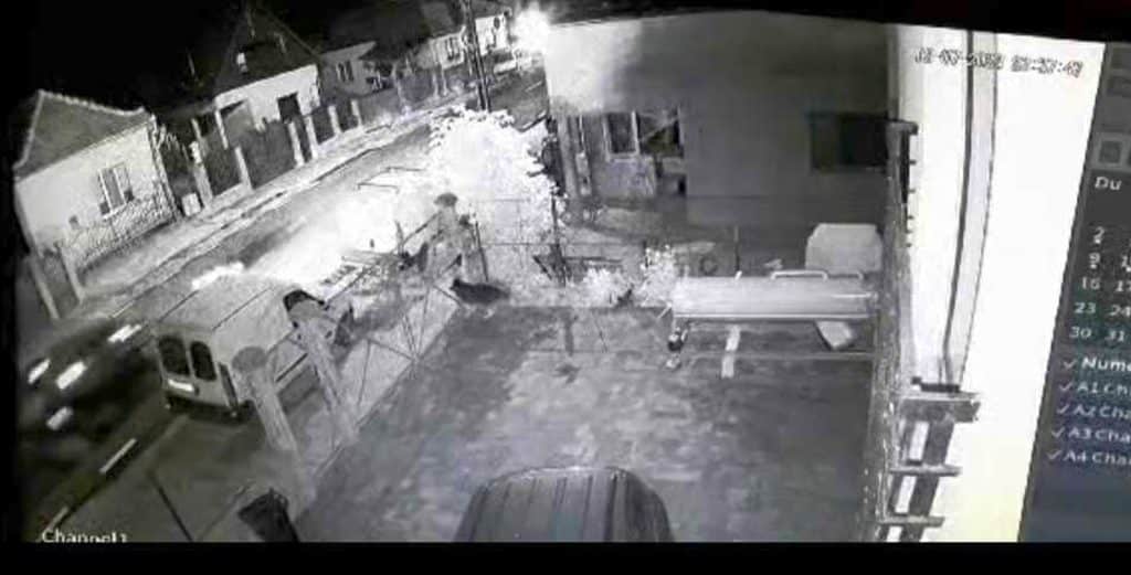 Imagini revoltătoare au fost surprinse de camere de supraveghere montate pe o stradă din Cimbrud. Un șofer care conducea cu viteză mare lovește din plin doi câini de talie mică aflați pe carosabil. Unul din patrupezi a murit pe loc.
