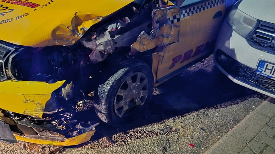 Șoferul taximetrului, care a lovit două autoturisme parcate pe strada Mărășești din Aiud, era băut