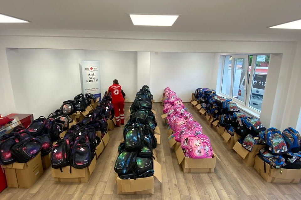 Crucea Roșie Română Filiala Alba a donat 50 de ghiozdane complet echipate copiilor defavorizați din Municipiul Aiud