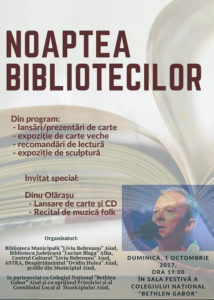 Duminică, 1 octombrie 2017: „Noaptea Bibliotecilor”, prima ediție, la Aiud