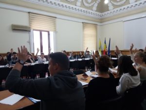 Sâmbătă dimineața, 27 octombrie, patru consilieri locali voluntari au participat la curs și i-au îndrumat pe elevi în formularea interpelărilor și proiectelor de hotărâre propuse de ei pentru dezbaterea finală.