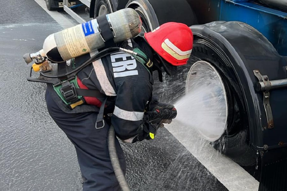 Pompierii militari din Aiud au fost solicitați să intervină, pe Autostrada A10, în zona localității Gârbova de Jos, pentru stingerea unui incendiu izbucnit la roțile unei cisterne care transporta lapte.