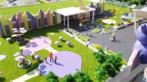 Terenul va fi amenajat cu spații verzi și locuri de joacă.