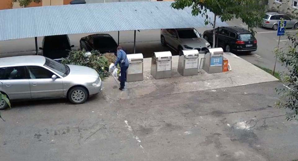 Ora 17:38 – la această oră cetățeanul nici nu mai verifică dacă este spațiu în container, depozitează pe jos presupunând probabil că au verificat cei de dinaintea lui dacă este spațiu în container.