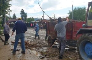 ”De azi dimineață de la ora 5.00 tot așa suntem. Încă nu a venit nimeni să ne ajute, au fost pompierii în recunoaștere și așteptăm să se retragă apa ca să intervină, până atunci dăm la lopată”, spune un tânăr a cărei locuință s-a aflat în calea apelor.