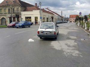 O Dacia Break parcată în mijlocul drumului a făcut deliciul trecătorilor, astăzi la Aiud