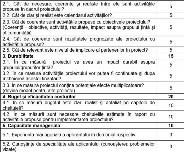 14. Criteriile pe baza cărora se atribuie contractul de finanțare nerambursabilă sunt: