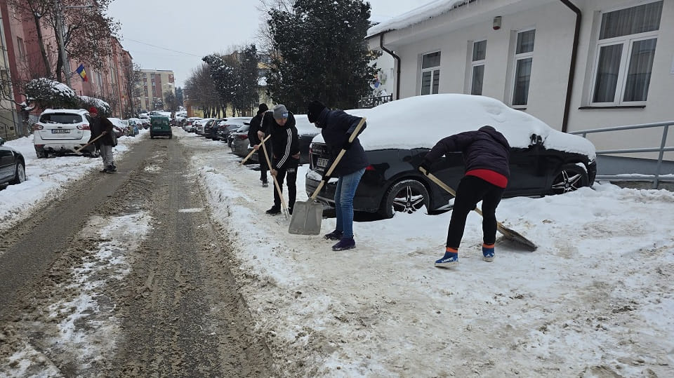 Angajați SPAPL, beneficiari de ajutor social și persoane private de libertate au curațat de zăpadă trotuarele din jurul școlilor și grădinițelor din Aiud