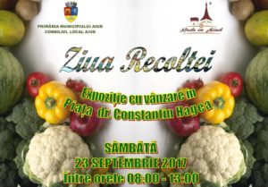 Primăria municipiului Aiud organizează sâmbătă, 23 septembrie 2017, între orele 08.00 – 13.00, în Piața Dr. Constantin Hagea, evenimentul ”Ziua Recoltei”.