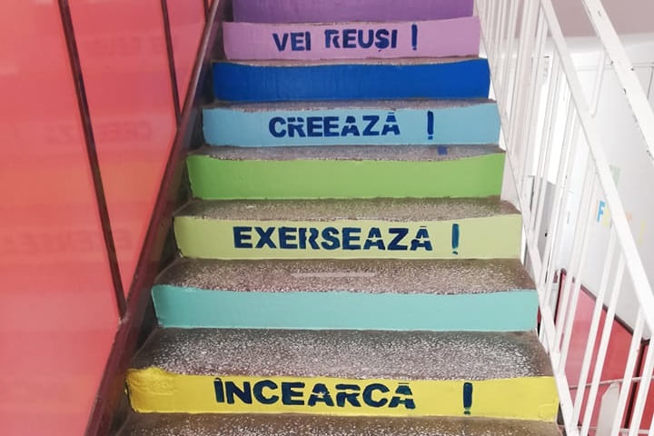 În urma unui proiect de parteneriat cu Centrul Multicultural „Liviu Rebreanu” Aiud, casa scării destinată intrarii/ieșirii elevilor și-a schimbat înfățișarea devenind mai prietenoasă și mai veselă.