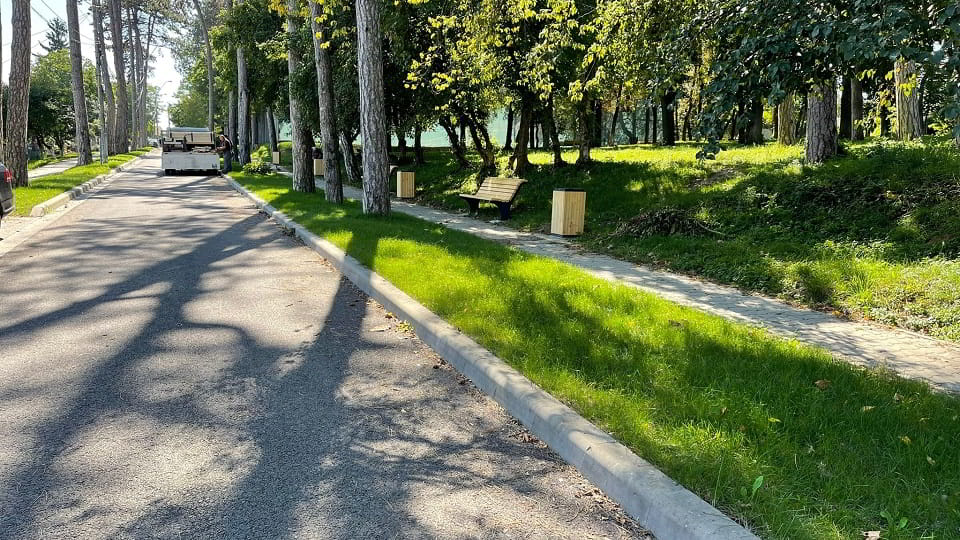 În aceste zile, pe Aleea Pinilor din Parcul Municipal Aiud se montează mobilier urban nou, bănci și coșuri de gunoi.