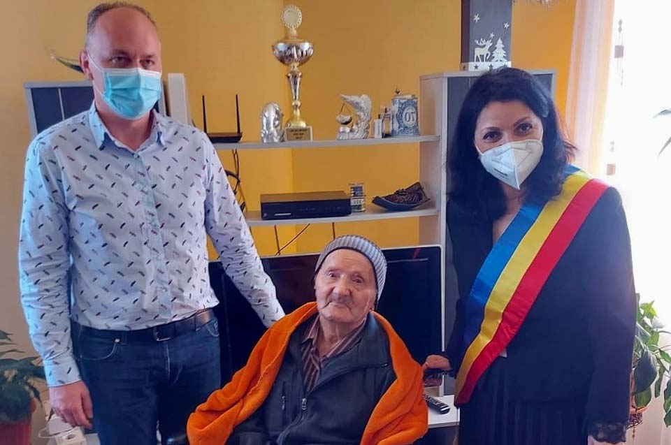 Singurul veteran de război din Aiud care mai este în viață, sărbătorit de autoritățile locale cu doar 5 zile înainte de împlinirea vârstei de 100 de ani