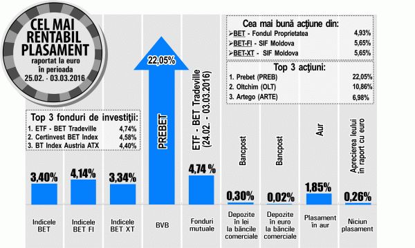 Între 27 ianuarie și 3 martie 2016, acțiunile producătorului de materiale de construcţii Prebet Aiud (PREB) s-au apreciat cu 22,05%, în raport cu euro, devenind astfel cel...