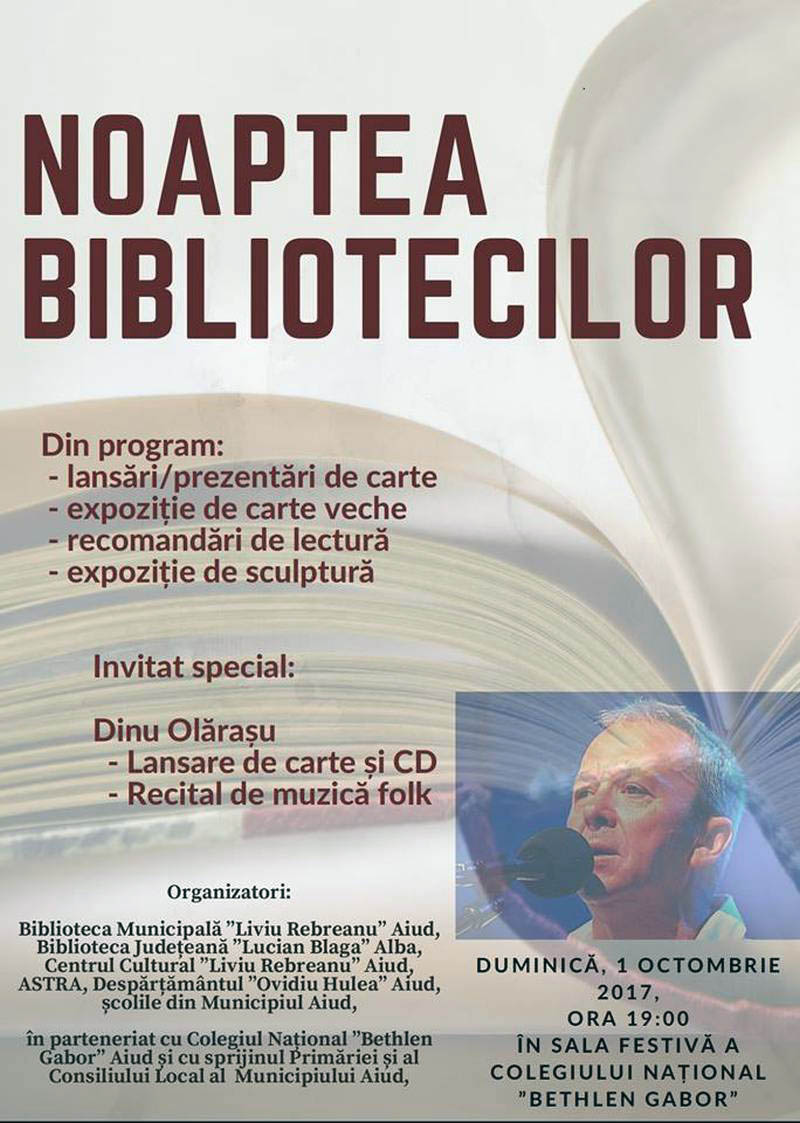 Duminică, 1 octombrie 2017, Aiudul găzduiește „Noaptea Bibliotecilor”. Aflat la prima ediție, evenimentul este dedicat bibliotecilor și rolului lor esențial în societate. Deschiderea va avea loc...