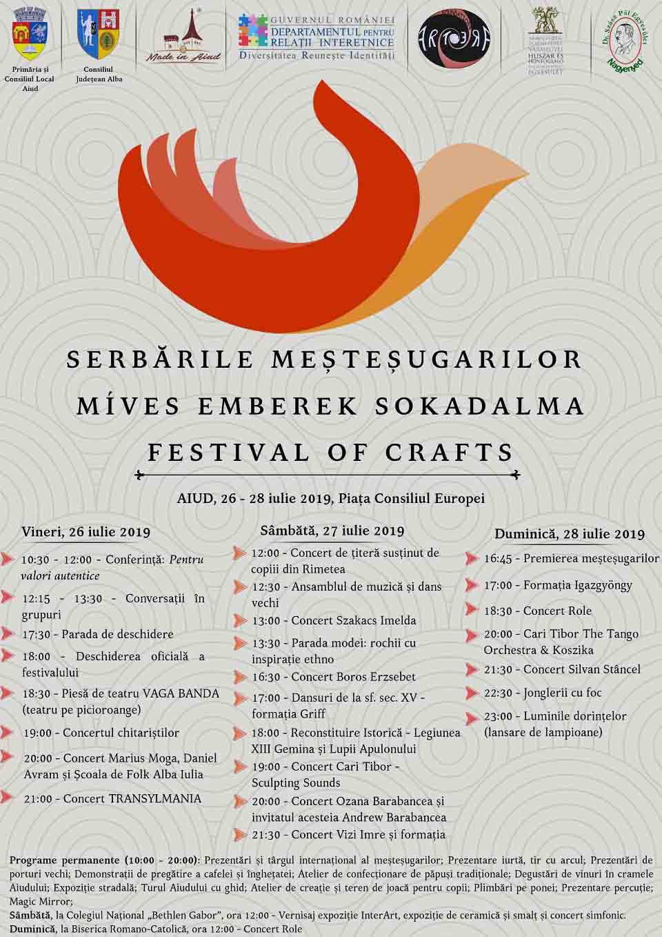 Deschiderea oficială a Serbărilor Meșteșugarilor a avut loc astăzi 26 iulie 2019, la ora 17.30 în Piața Consiliul Europei cu o paradă promițătoare. Seara va continua...