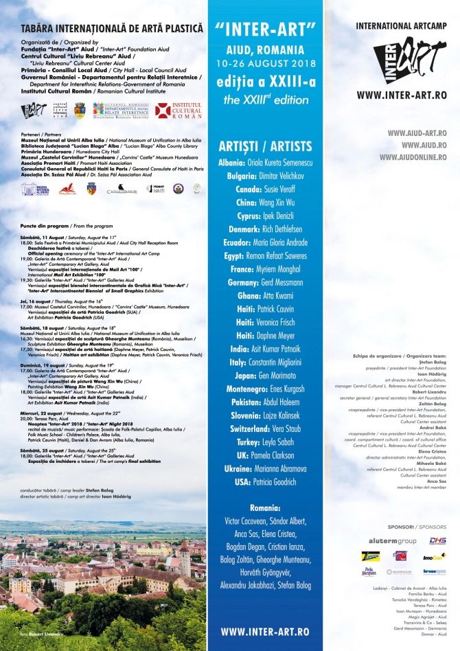 Între 9 și 24 august 2023, peste 30 de artiști vor fi prezenți la Aiud, la tabăra Internațională de Artă Plastică “Inter-Art”. Peste 30 de artiști...