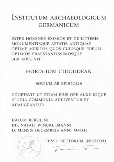 În luna decembrie a anului 2012, cercetătorul Horia Ciugudean de la Muzeul Naţional al Unirii din Alba Iulia a fost primit ca membru corespondent al Institutului...