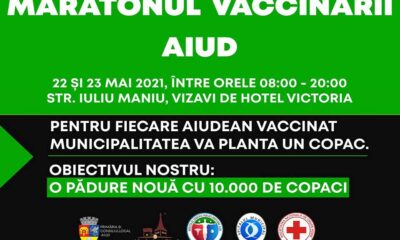 Primăria municipiului Aiud organizează sâmbătă și duminică, între orele 08:00 – 20:00, în parcul de pe strada Iuliu Maniu, vizavi de Hotel Victoria, Maratonul vaccinării împotriva...