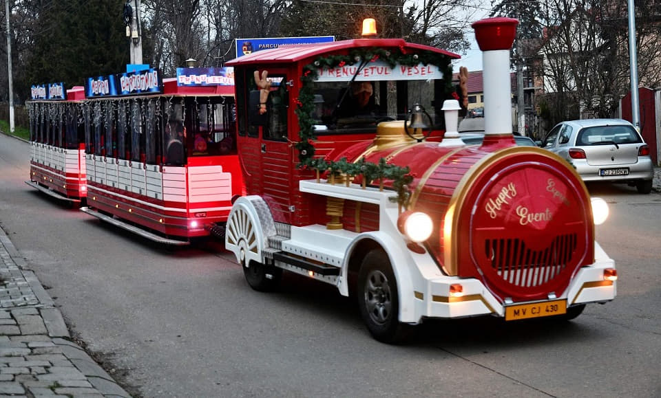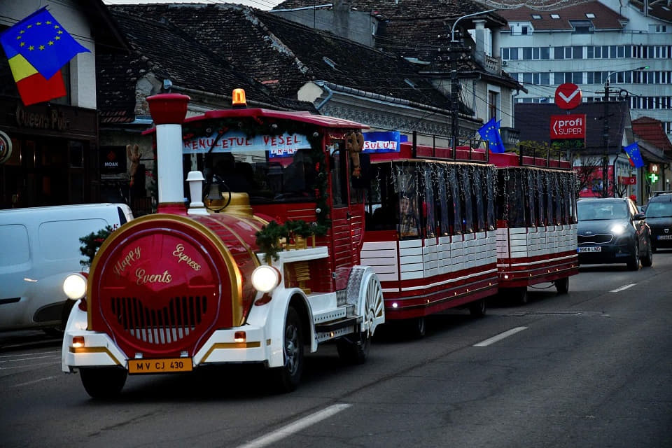 E bucurie la Aiud, iar Trenulețul lui Moș Crăciun face tot deliciul. Vă invităm să-i invadați vagoanele pe vers de colindă și iz de sărbătoare.