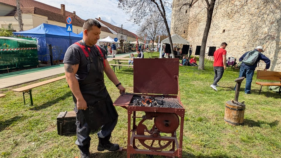 Timpul frumos din prima zi a PlantFest de la Aiud, a prilejul perfect pentru meșterul fierar Bogdan Rus să încingă forja și să bată fierul la atelierul tradițional organizat în cadrul primei ediții a evenimentului.