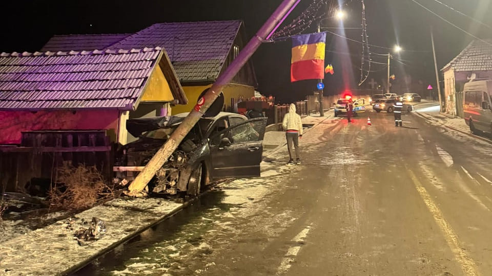Un autoturism s-a izbit într-un stâlp de electricitate, la Aiudul de sus