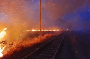 Un incendiu de vegetaţie uscată a întrerupt timp de aproape o oră circulaţia feroviară pe magistrala M300, între Aiud aiud Teiuș