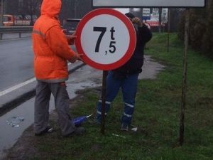 La capetele sectorului de drum restricționat se vor instala indicator rutier de formă rotundă indicativ C18 cu semnificația accesul interzis vehiculelor având masa mai mare de 7,5 tone însoțit de indicatorul rutier adițional de formă pătrată indicativ P18 de specificație cu excepția riveranilor.