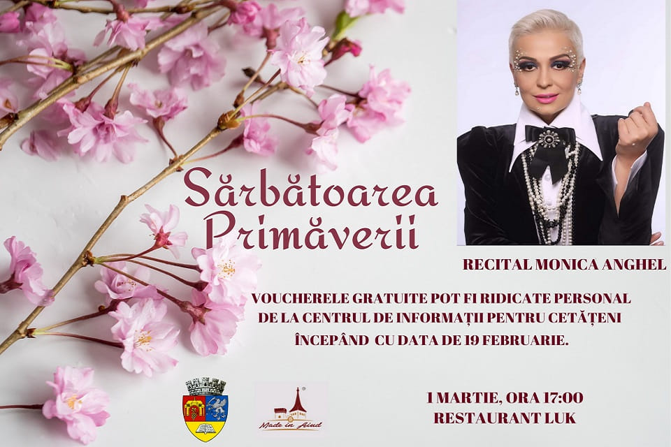 Vineri, 1 martie 2024: Recital Monica Anghel la Aiud, cu ocazia „Sărbătorii Primăverii”