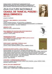 Aflată la cea de-a XXIX-a ediție, manifestarea va cuprinde un colocviu despre viața și opera marelui poet, concurs, expoziție și prezentare de carte, precum și recitaluri de muzică și poezii. Evenimentul se va desfășura cu începere de la ora 14.00, în sala I.C. Brătianu a Primăriei municipiului Aiud.